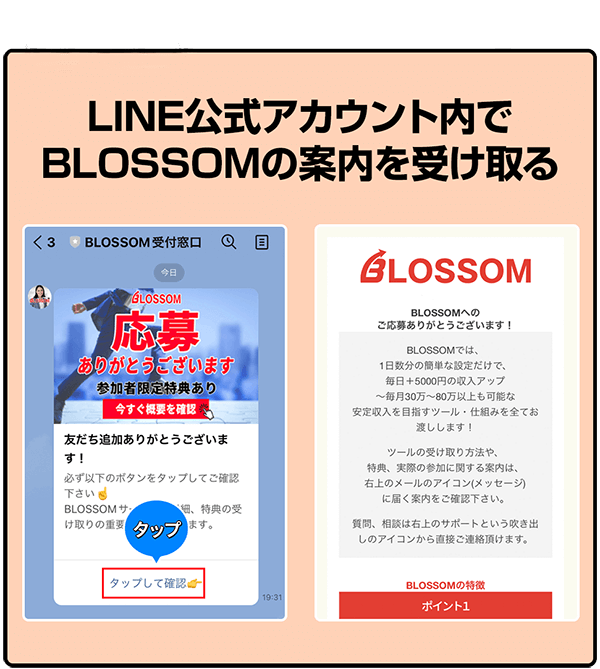 ブロッサム公式サイトからボタンを押し、そこからLINE登録をします。